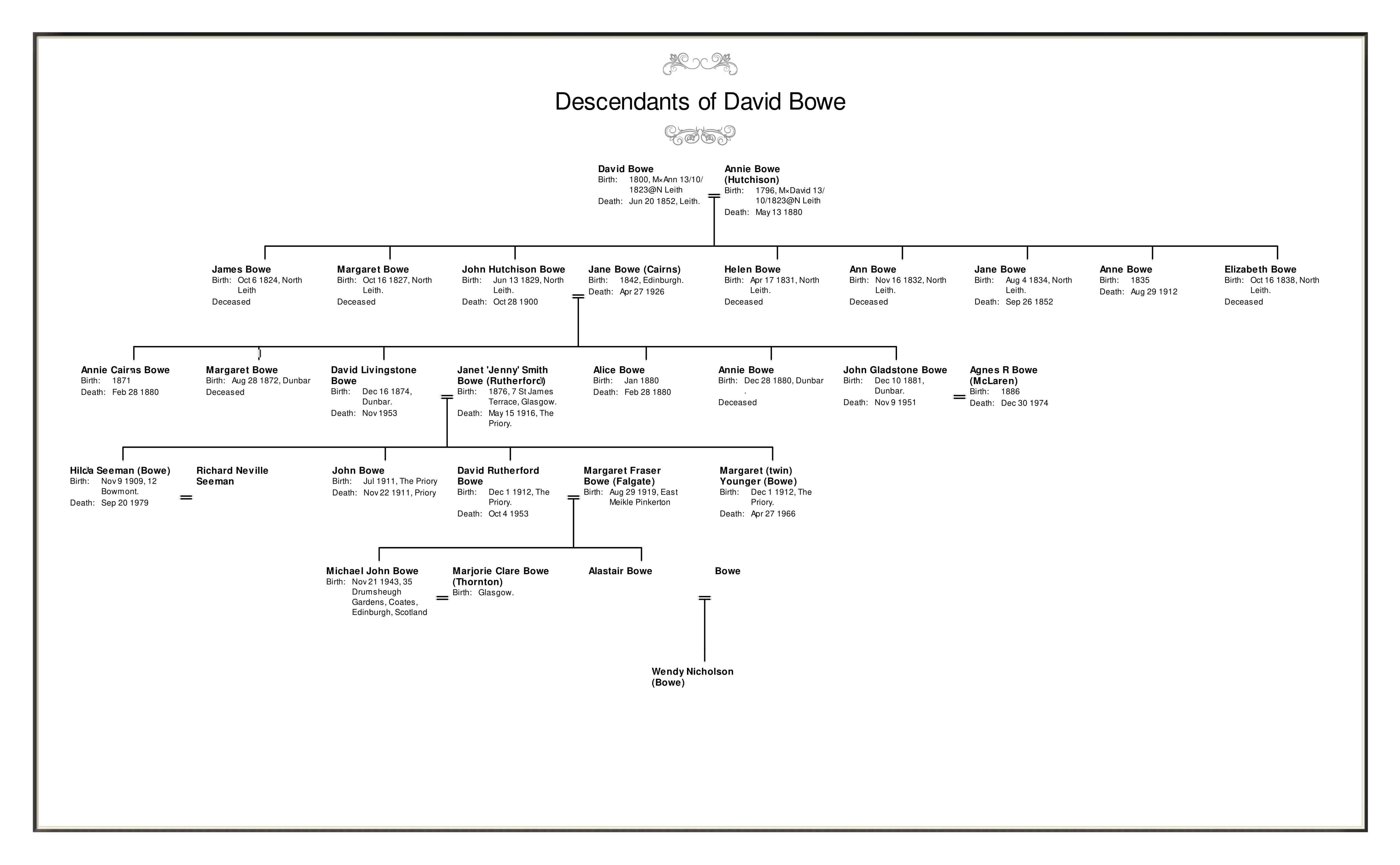 As mentioned in the above magazine article, David Livingston Bowe had the Priory built for himself in 1910. He is seen in the Bowe family tree below, in the