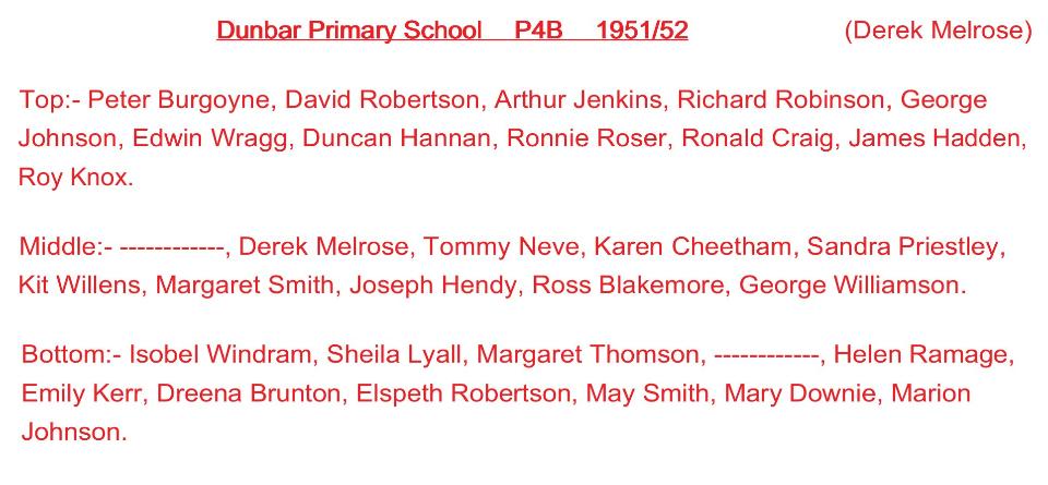 Unfortunately for those in Dunbar primary and secondary schools, during the 50s and 60s and now in their late 60s and 70s, we must apologise for the intrusion of the former headmaster’s smiling image on the front row of the above school photograph. It does not become one to talk ill of the dead but in this case one could make an exception.